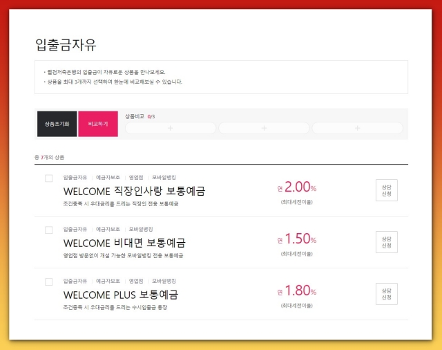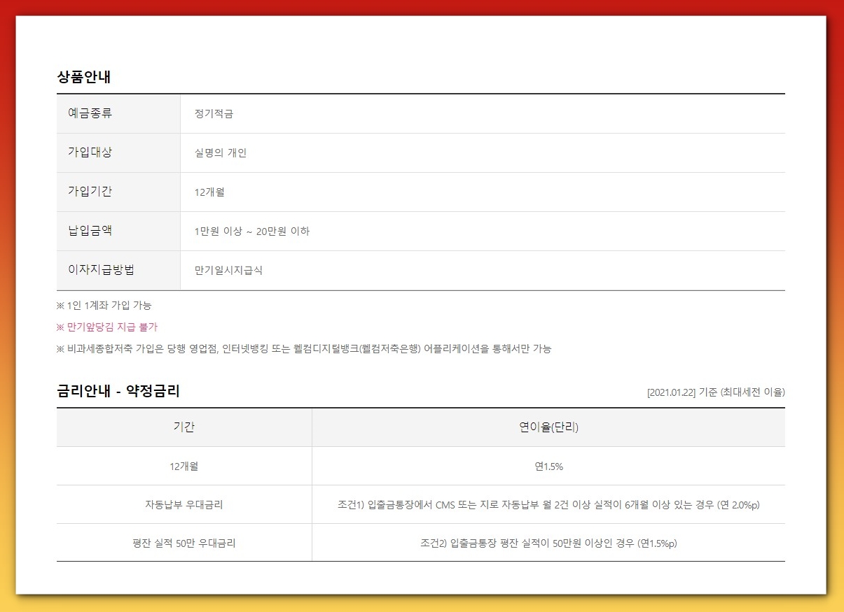 웰컴저축은행 파킹통장 상품과 적금 상품에 눈이 많이 갑니다.