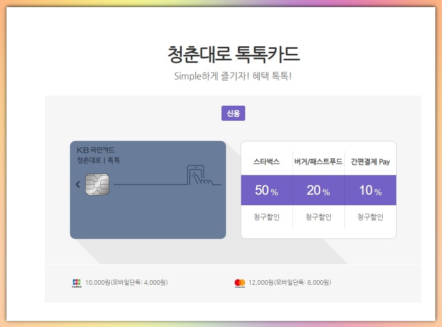 롯데 LIKIT fUN+ 카드와 동일한 혜택의 스타벅스 할인카드 청춘대로 톡톡카드입니다.