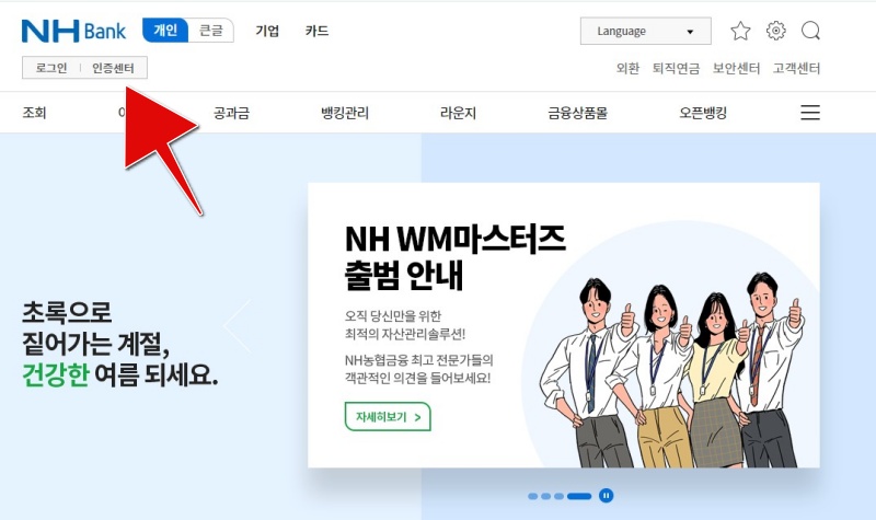 미성년자 공인인증서를 신청한 은행의 홈페이지 공인인증센터에 들어갑니다. (저는 농협이라 농협공인인증센터를 이용했습니다.)