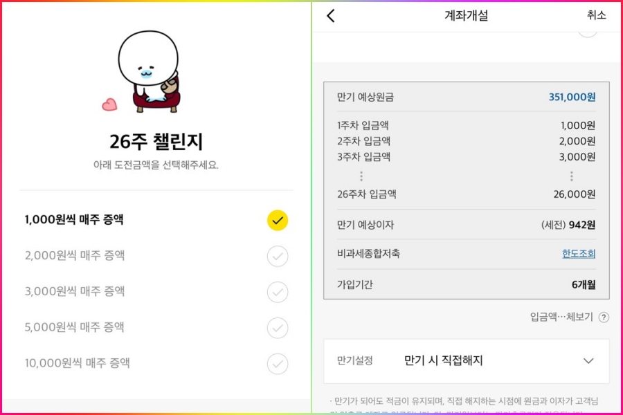 26주 동안 매주 1,000원씩 증액되는 적금이에요.