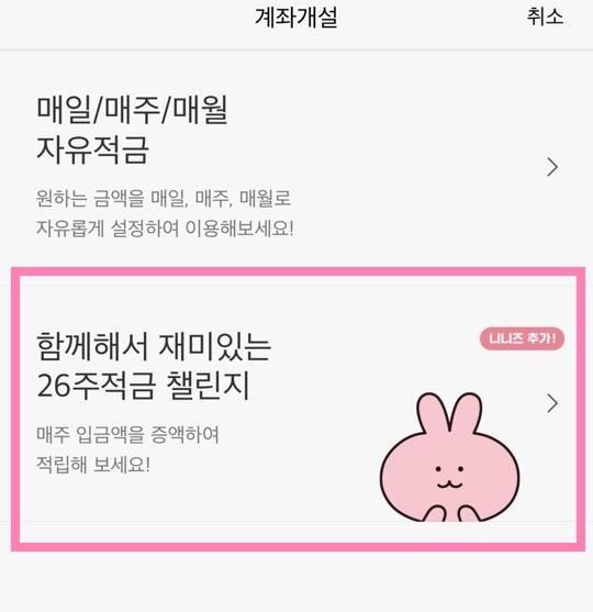 26주적금은 자유적립적금이라 중간중간 추가 납입도 가능해서
